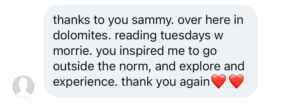 “This book made me feel seen. I’d been sitting in uni lectures wondering if I was the crazy one for not wanting the 9-5 life. Sam’s words gave language to thoughts I couldn’t explain. It helped me realise I’m not lost — I’m just on the wrong map, and I can do something about it.”